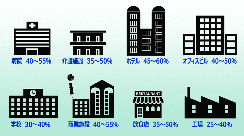 施設別、エアエコで年間電気代削減シュミレーション